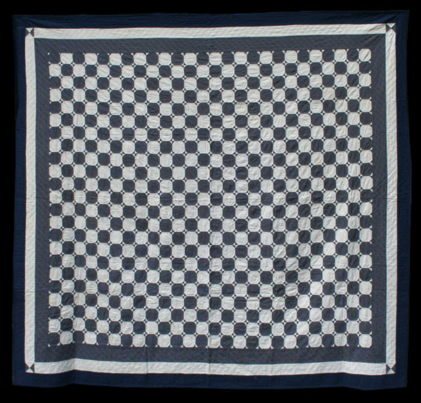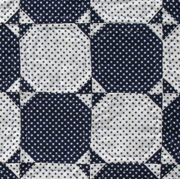 My mother must have asked a local quilt maker to reproduce a very similar antique indigo quilt in Mom's collection. Mom really liked the old quilt, and wanted one like it to use on a bed.