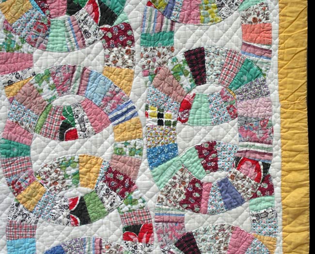 The quilt maker hand appliqued the rings to the ground using a running stitch.