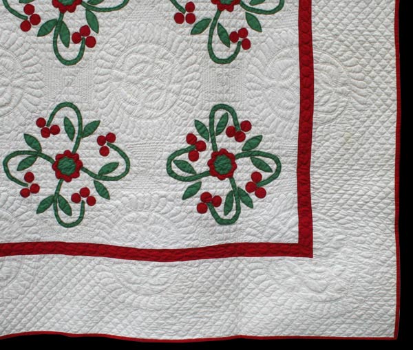 Note the dense, elaborate and fine quilting, all by hand,