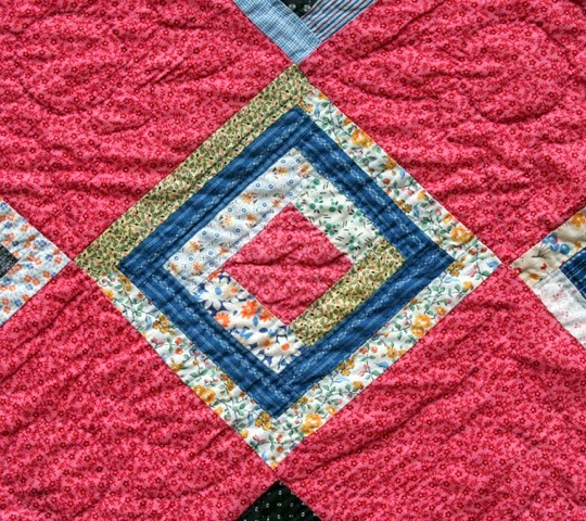 Here the quilt maker separated the traditional Log Cabin blocks,