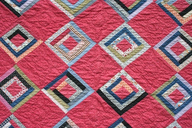 alternating them with squares of un-pieced (double pink) fabric. Rather unusual.