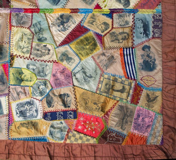 This rare treasure is signed and attributed, on the quilt, embroidered: