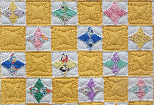 This very cheery 1930s quilt is small ~ probably originally intended for a twin bed.